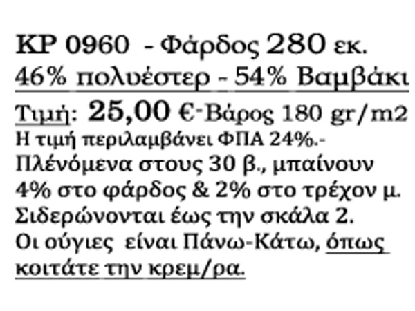 24 οδηγοί βαριά υφάσματα σε φάρδος 280 εκ. (Κόστος κρεμ/ρας 32 €)